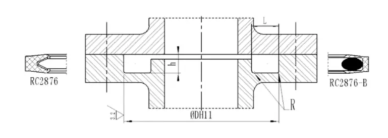 RC2876-B-40-PTFE4+R02 İç basınç oluğunun dış çapı 40, sızdırmazlık halka malzemesi PTFE4'tür ve eşleşen O-ring flororubber