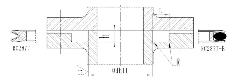 RC2877-B-40-PTFE4+R02 Dış basınç oluğunun iç çapı 40, sızdırmazlık halka malzemesi PTFE4'tür ve eşleşen O-ring flororubber