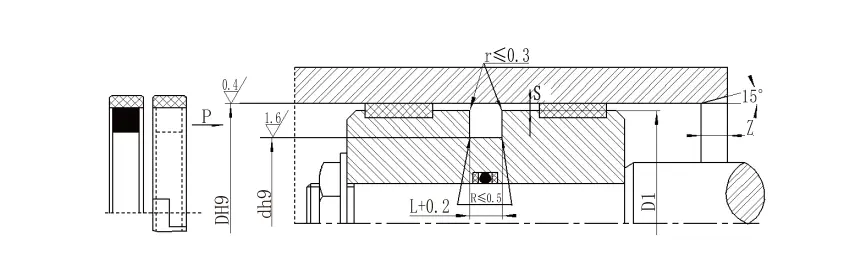 | Not: 1.> 60MPa basınçları için, conta kökü alanı H8/F8 eşleştirme toleransı ve ultra yüksek basınçlı conta Smax <0.05 kullanır. 2. Silindir çapları> 30mm için kapalı oluklara takılabilir. Lütfen şirketimize danışın. | ||||||||||