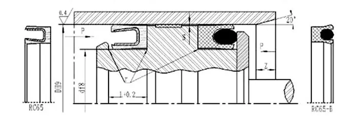RC65-B-40-PTFE4+R02: Delik çapı 40, sızdırmazlık halkası malzemesi PTFE4'tür, O-ring floro kauçuktan yapılmıştır.